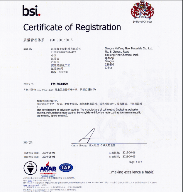 江蘇海豐新材料有限公司成立于2014年,位于啟東市濱江精細(xì)化工園區(qū);產(chǎn)品秉承國(guó)際先進(jìn)涂料配方設(shè)計(jì)理念,專注于卷材涂料 ,集研發(fā)、生產(chǎn)、銷售、技術(shù)服務(wù)于一體。......